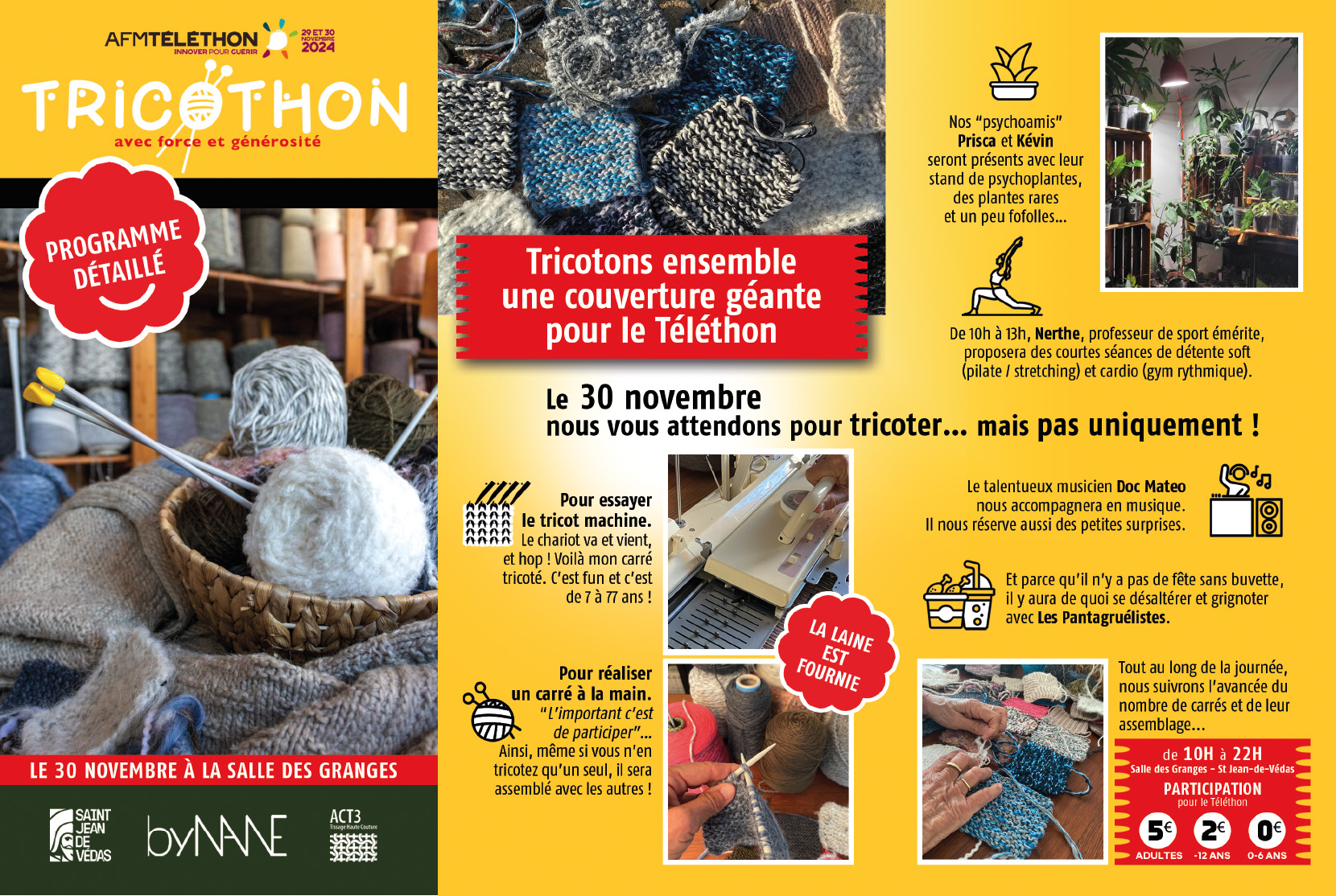 Parce que c'est une action en faveur du Téléthon, la participation au Tricothon est payante : 5€.